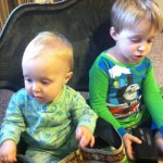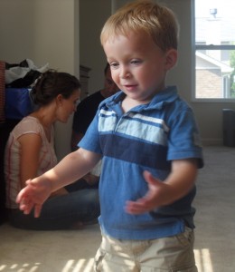 In his twenty-eighth month, Jonas is: composing creative, sweet, and funny sentences (Mommy, sometimes Xander cries about green beans; Leave your pants on and your shirt on…protect your belly button; That was fun…Aunt Beans is so sweet; and He’s going to help somebody…that’s so nice, Mommy, to help our friends); occasionally skipping out on his afternoon nap; becoming astoundingly proficient at putting puzzles together; enjoying music class and story time and play groups and walks with his younger brother; and starting to take an interest in dressing himself.