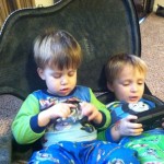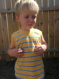 At twenty-nine months, Jonas is: continuing to amaze and endear us every day with his uncanny ability to communicate; trying his hand at asking questions (he basically spouts off a sentence with a questioning look on his face and an upswing in tone at the end); going to sleep with the light on (he’s been doing this for a while now…I keep waiting for the phase to pass, but, as it looks like it’s here to stay, I think we need to get him a night light); starting to dress and undress himself (he’s getting really good at taking off his jammies and putting on his pants and shoes); reaching a few important potty milestones (so much that I think we might start full on training very soon); and cracking Xander up at the dinner table.