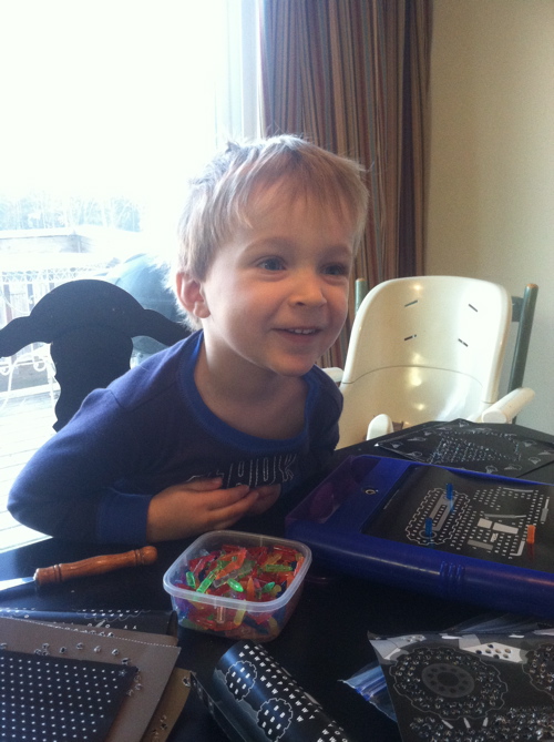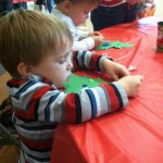 Tom and I took the boys to Breakfast with St. Nick at our church this morning. Jonas and Roman both wanted to meet St. Nick which was really cute. (Xander didn’t so we didn’t go there with him…I totally get it, though…he reminds me of my sensitive self as a child). Jonas and Xander both had fun bowling (knocking over the snowmen bowling pins) and doing Christmas crafts (coloring Rudolph, decorating foam magnet Christmas trees, etc.), and Roman enjoyed checking out the festive sights.