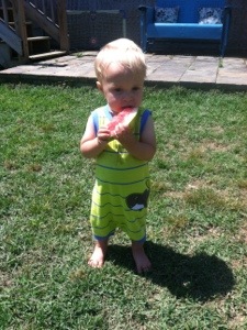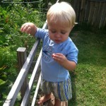 Jonas and Roman had so much fun playing in the backyard this afternoon while Xander was napping…Jonas ran through the sprinkler, and Roman ate strawberries Mommy picked for him from the garden.