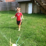 Gotta love the dollar store for this $6 find (just like the one that the boys played in at MeMe and PaPa’s on Memorial Day)!!! Xander is definitely the bravest of the three boys when it comes to the sprinkler…he has no fear and could play in it all day long.
