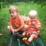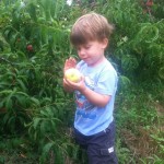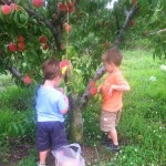 The boys and I drove out to Pratt’s Orchard this morning to pick peaches. We had so much fun and just love the experience of picking our own in-season fruit. We’re looking forward to making peach pie this afternoon.