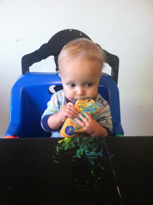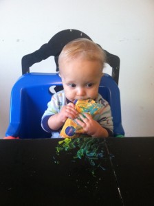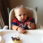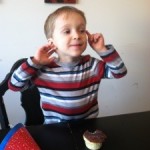He had a blast at his birthday party this afternoon, playing with Pops and Maw, Aunt Julie, Mommy and Daddy, and Jonas and Xander. (The proof is in the cupcake on his face…ha!)