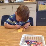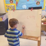 I went with Xander this morning to his Get Acquainted Day at preschool! He got to meet his teachers and half of his classmates (two of whom were in his class last year), sign in by writing his name on an easel, color a fish for the hallway bulletin board, get his picture taken for the first day of school, work on an art project of his own making, circle up for story time, and find his cubby. He went from hugging me to hugging his teachers in no time. I think he’s going to love what he gets to do and learn about in class this year…I’m so excited for him.