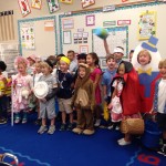 Xander, Roman, and I went to Jonas’ school this morning to watch the kindergarten Nursery Rhyme Parade. It was pretty sweet seeing all of those little people in their costumes. Jonas seemed to speed up every time he walked past me, so it was hard for me to get a good shot…that and the fact that Roman chose that entire time period to meltdown. We got to see Jonas’ shoebox shop in the hallway “village” and check out all of his friends’ creations as well. As I was trying to snap a few pictures in Jonas’ classroom, Roman was trying to sneak candy off of Jonas’ Jelly Beans store. Ah life with kids…what can you do?
