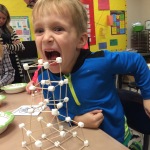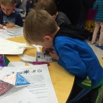Tom took Jonas to Math Night at NES tonight…they enjoyed learning about symmetry by drawing boomerangs and making paper snowflakes, building tetrahedrons and pyramids, etc.