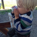 While Jonas and Xander were at preschool this morning, Roman and I got to take a tour of the Hatcher Family Dairy with our moms’ group. He was all about drinking the little sample cups of chocolate milk and milking the pretend cow. He was also totally fascinated with the port-a-potties, the farm cat, and the hand washing station so we made repeated visits after short interludes checking out the chickens, the cows, the creamery, and the milking parlor. It was fun for me just having one little boy to chase around, and he had a blast exploring the farm.