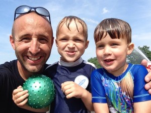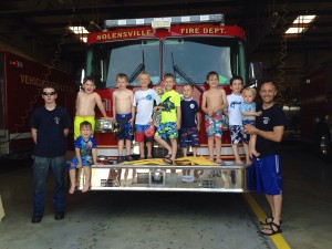 To celebrate the end of Jonas’ baseball season, Tom invited all of the boys from the team out to the fire department to run through the water from the fire hose. Jonas was a little hesitant but eventually got into it, Xander was all about it, and Roman would have none of it. (The crying picture of Roman might be the first in a new series I’ll post, directly inspired by Greg Pemboroke’s hysterically therapeutic blog “Reasons My Son Is Crying”…he was crying because I wouldn’t let him take pictures with my phone near a 50 foot jet stream of water from a fire truck.)