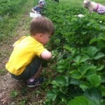 The boys and I went strawberry picking this morning with our mom’s group…something we’ve all been looking forward to since last year…with an added bonus…Daddy surprised us and walked in the door just before we were about to leave to let us know that he took the afternoon off from work to go with us!!! We had a big time picking strawberries, ate a picnic lunch afterwards, and enjoyed some homemade strawberry-honey popsicles for dessert.