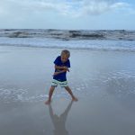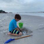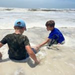 Today, we hit the beach in the morning for some metal detecting, sand castle building, and wave dodging on the shore. Then, we spent some time at the pool (the boys had fun rescuing little frogs!) before heading back in for lunch and quiet time. In the afternoon, Roman and I hung out at the pool while Tom took Jonas and Xander down to the beach. Afterwards, we got cleaned up and went out to dinner in Port St. Joe at Pepper’s, a Mexican restaurant that was packed (which was a little crazy for me, honestly…we’ve definitely not been used to being surrounded by that many people in more than three months). Roman did not make it long, which I was actually grateful for, because it was loud with music and conversations and I was feeling done too. He started covering his ears right after he finished his meal, and I knew the sensory meltdown was coming. Thankfully, he was able to be a big guy and use his words to say, “Mom, can we get out of here? The sound is driving me crazy!” instead of flipping into full meltdown mode. I was so proud of him! We walked down the street and window shopped (Jonas and Xander ended up joining us too) until Tom was able to box up the leftovers and pay the bill. Then, Tom walked with the boys down the street and to the ocean to hang out, while I did the grocery shopping. When we got back home, Tom and I put a movie on for the boys and took a short but wonderful sunset walk on the beach.