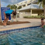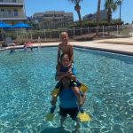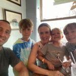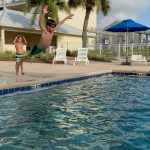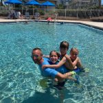 Today was a rainy day. So, we had a leisurely morning and drove out to Port St. Joe for lunch at Sisters. We ate there last year and loved it…the boys were begging to go back. It’s owned by several southern women who call you “honey” and “darlin'”, serve the best home cooked meals and home baked cakes/pies (that you get a slice of for free with your meal!), and make you feel right at home. We stopped at a few souvenir shops on the way back, and then hit up the beach and the pool for the rest of the afternoon. After dinner, the boys cozed up and watched a show while Tom and I took a quick walk on the beach. We even saw a fisherman reel in a huge stingray…Tom helped get him back in the water! We couldn’t wait to tell the boys about it when we got home (especially Xander because he’s such a lover of marine life). Then, Tom rounded them up for an impromptu pool competition (I love his ability to create fun)…he was the judge and I was the audience. The boys competed for Best Jump, Most Creative Underwater Movement, and Most Skilled Swimming Stroke. There are always a few come aparts because our boys are SO competitive, but it was still fun to watch/do.