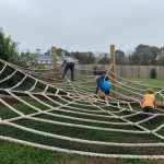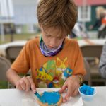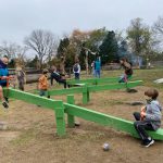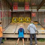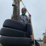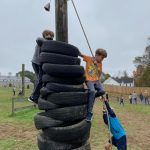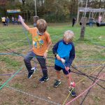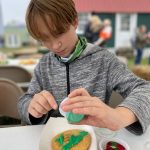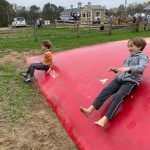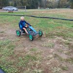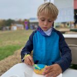 The rest of the afternoon was filled with: racing through a rope maze, trying to lasso a (pretend) calf, playing on the seesaws (love that old fashioned fun), climbing on the spider web, decorating cookies (with choose your own cookie, icing color, and toppings), playing pumpkin skeeball and basketball, racing ducks (with water pumps and half PVC pipe slides), conquering a right turn only maze, and jumping on a gigantic “corn popper” pillow. We used lots of hand sanitizer, wore our masks, played a lot, and left tired and happy.