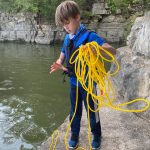 We picked the boys up early from school today and took them out on the lake to do some magnet fishing…a little celebration for making it through the first week of TCAP testing. We had fun just riding around on the lake, and the boys caught a grill grate, some electrical wire, and a hoop earring to boot. HaHa!