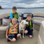 We took Petra, which is always fun because she’s just so in her element when she’s in the great outdoors with her people. When we stop off at wooded islands to explore, she’ll grab a stick and drop it at our feet and jump up and down until we throw it out in the water…then she’ll sprint out and swim to catch it and bring it back to shore, shake all the water off, and do it all over again.