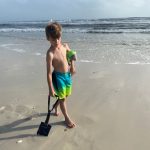 After dinner, we headed down to the beach, where the boys buried themselves/each other in sand, did some metal detecting with Tom, and had fun dodging the waves on the shoreline.
