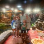 We played all day on Friday and enjoyed a relaxing, quiet, and delicious dinner at the Coney Fork River Valley Grille on Friday night. (There was no loud music playing and they seated us in the very back of the restaurant next to the indoor fish pond, which was so soothing after a long day of waterpark fun.) Afterwards, we saw a spooky, Halloween themed light show in the conservatory called “The Phantom of the Atrium”. (I was so excited about sharing that with Tom and the boys because I remember seeing one of those there when I was a little girl.)