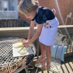 By the time Friday rolled around, they needed a veg day at home. So, they did a lot of resting, snacking, hanging out with neighbors, and reading. I set up a little sensory station on the kitchen table for them to visit in between, complete with kinetic sand, play doh, water bowls with pipettes, and orbeez (water beads).