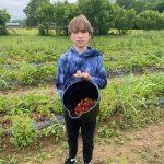 Tom and the boys and I went out to Burns Farms this morning to do some strawberry picking. It was cold and blustery, but we made quick work of it and came home with a bag full of delicious strawberries.