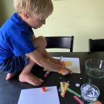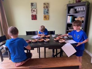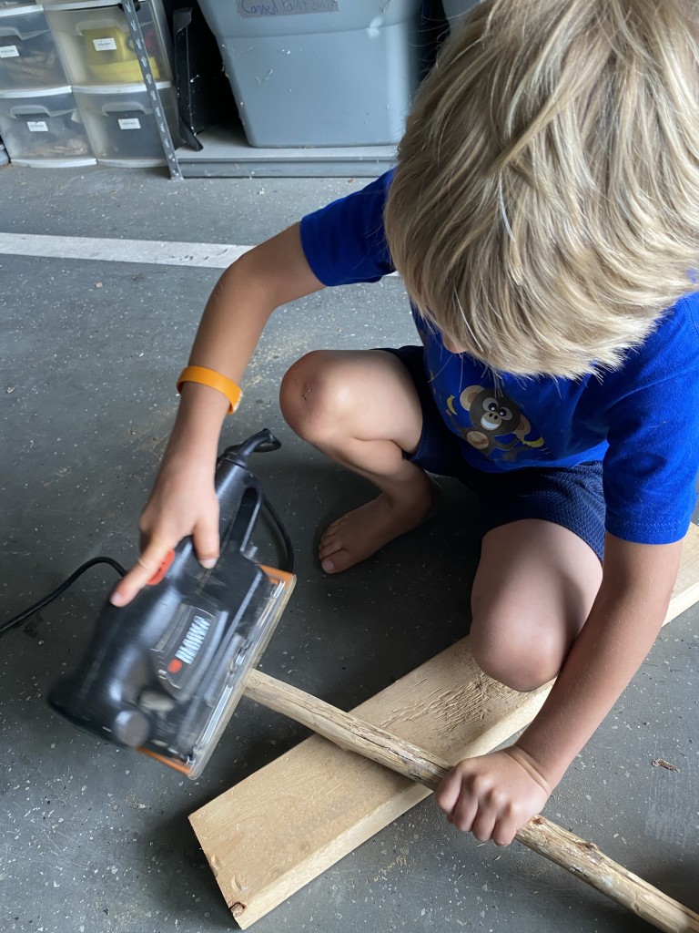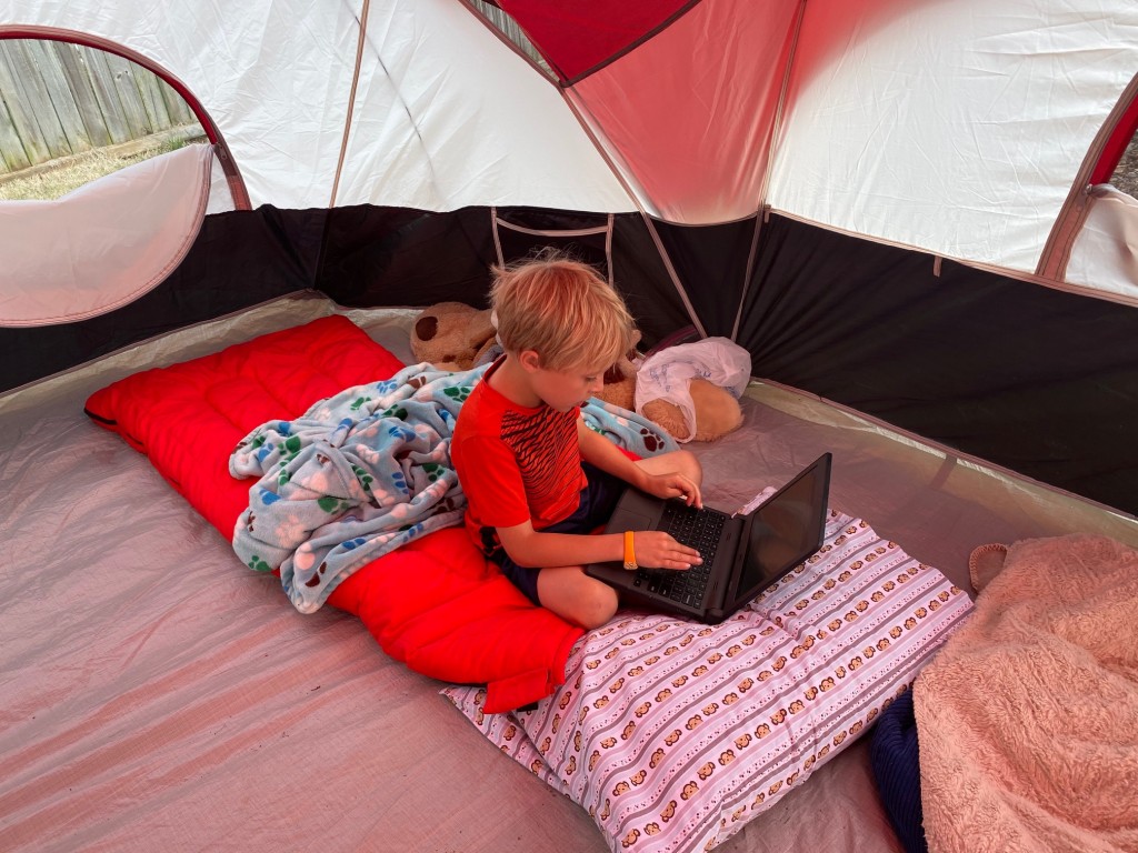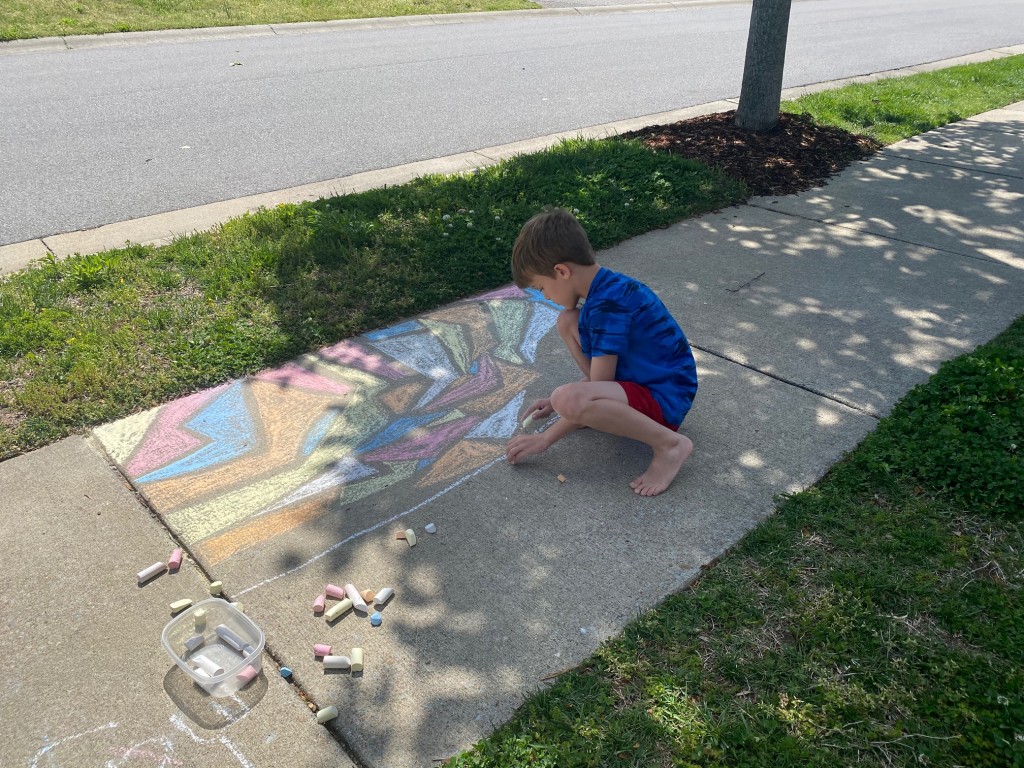 Today was a crazy day. We didn’t get started with homeschooling until almost 10:00 am, at which point the electricity went out and the internet went down. So, the boys played outside in the sunshine, made themselves lunch, and played outside some more until the power came back on…then, they did a little free play on their tablets.