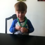 Jonas and Xander had a B-L-A-S-T playing with Homemade Gak this morning (mommy did too…haha!!). We made letters, animals, handprints and footprints, and funny noises…four simple ingredients (glue, water, food coloring, and Borax) made for a lot of fun…