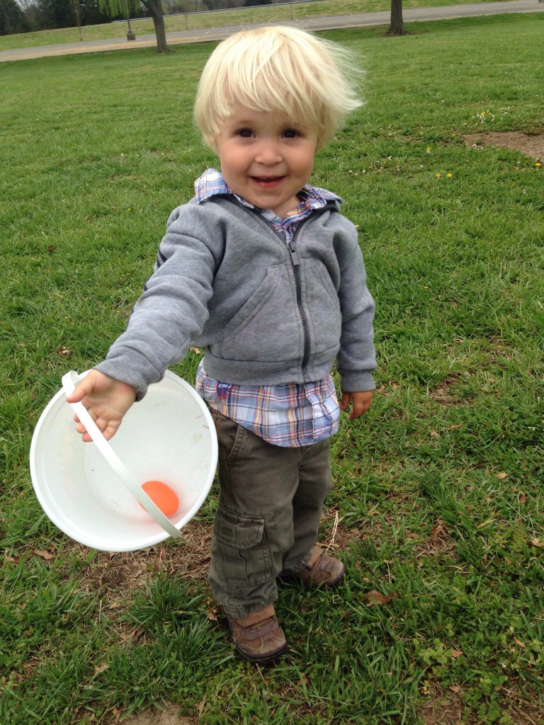 The boys loved having an Easter egg hunt at the park this morning with several sweet moms and kids from our moms’ group. They had fun rotating around to the playground, the snack table, and the arts and crafts table before and after the hunt. At first, Jonas and Xander hunted on the “big kid” side and Roman hunted on the “little kid” side. But Roman very quickly put the breaks on that and absolutely would not pick anything up, so we just walked over to the “big kid” side and he went right to work.