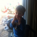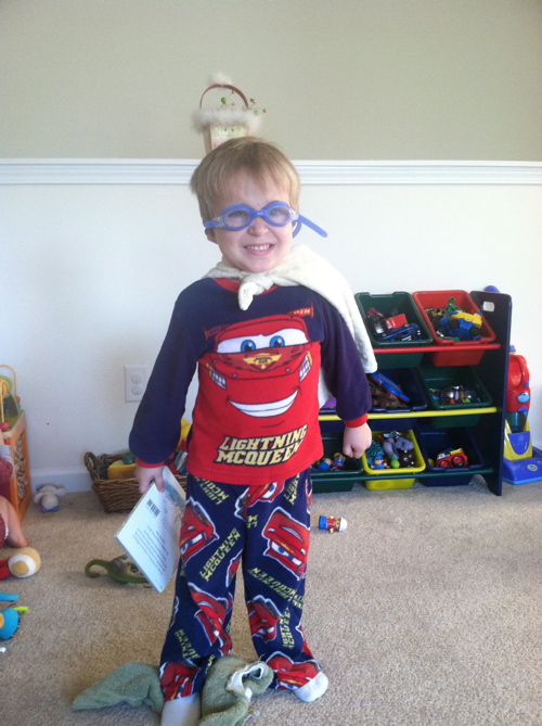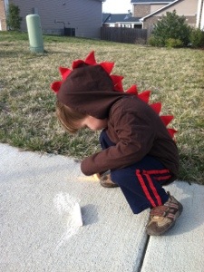 Here’s Xander in the dinosaur hoodie I made him for Christmas!