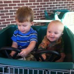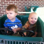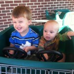 Xander, Roman, and I went for a Publix run after we dropped Jonas off at preschool this morning. I couldn’t resist putting Roman in the “car car” beside Xander. He was so proud, and it was so sweet seeing both of my baby boys be big boys together. (I ended up taking Roman out right after I took these pictures because he was sliding from side to side, with a big grin on his face no doubt…he’s still just a little bit too little for it…but it was so cute to see.)