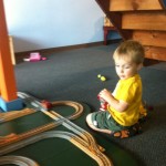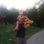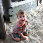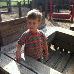 Xander, Roman, and I went to Pinkerton Park this morning after dropping Jonas off at preschool. Roman got a big kick out of the view from the Bjorn, and Xan-Man had a blast checking out all of the wooden structures and playing in the sandbox.