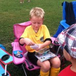 I took Jonas and Roman to see their cousin Val play soccer this morning. It was so fun to watch him play…he scored several goals and I can unbiasedly say that he was one of the best players on the team…go Val!!! Annabella was quite taken with Roman and he with her (it’s a kick for me to be around her because she’s exactly one year older than Jonas, so I’m always thinking…wow…this is what Jonas will be doing this time next year). I always love hanging out with my dear friend and cousin, Heather, and it was sweet to be a part of her Saturday morning family event. We brought Val his birthday present because we were not going to be able to make it out to his party that afternoon (I had to hit up a kid in the toy aisle at Target for help with BeyBlade BeyWheelz…ha). He totally surprised me by bringing two little envelopes for Jonas and Xander with two precious notes telling them that he loved them and two of his very own matchbox cars…I mean, come on! I hope my boys grow up to be as thoughtful and as giving as their cousin Val.