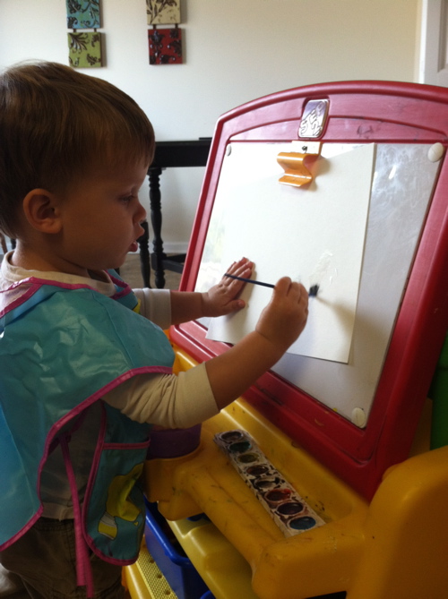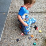 Jonas didn’t have school today, so we were going to tour the Hatcher Family Dairy with our moms’ group…but he joined the band of sick brothers. So, while Roman took his morning nap, I decided to try out an activity with the boys that my dear friend, Honora, told me about…smashing cotton balls. I figured I couldn’t go wrong with messy art and hammers with little boys…haha!!! They had a blast.