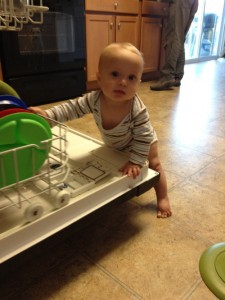 In his twenty-ninth week, Roman is: trying bananas and apples; squealing with delight when he sees his sippy cup of water; starting to cover a lot of ground with his army crawl…like an entire room…he’s becoming quite the explorer; and having a blast helping Mommy tuck his big brothers in for their afternoon nap (he loves to crawl under Xander’s bed while I’m reading books and then do peek-a-boo…he does it every day, and thinks it’s just as hysterical as it was the first time AND he loves to get super cozy and roll around in Jonas’ bed with all of Jonas’ blankets and stuffed animal friends while I’m reading books too).