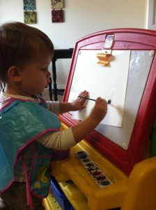 Jonas’ art work is really changing these days, and I’ve been amazed. He’s doing Handwriting Without Tears at preschool, and I think some of the activities they’ve been working on (i.e. assembling Mat Man with all of his different shapes, etc.) have really started to come through in his art work.