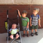 (Last year, Xander rode in the stroller on our way in to drop Jonas off…I asked him what he wanted to do this year and he said, “Ont walk”. So, he’s walking and loving it and Roman’s riding in the stroller instead of in the Bjorn…they’re both getting so big.)