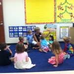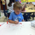 This morning, Tom and I went with Jonas to his preschool for Get Acquainted Day to meet his new teachers and classmates and to see his new classroom. (Thanks be to our dear friend, Honora, for keeping Xander and Roman for us at home, so we could spend this special time with Jonas.) He was so excited and had fun checking everything out (all the different centers look super fun…arts and crafts, music, sand and water, books, puppets, blocks, dress up, puzzles, home living, etc.). Here he is enjoying the arts and crafts center and some circle story time with his new teacher, Mrs. Patti, and his new classmates. He’s very much looking forward to his first day next Tuesday. Yay!!!