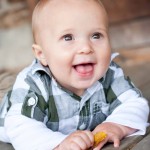 At twenty-seven weeks, Roman is: trying butternut squash (his favorite so far) and carrots; getting up on his knees and off of his tummy, rocking back and forth, and launching forward (he’s figured out the legs motion…now he’s working on the arms); army crawling his way to a gate at the top of the stairs; and muddling through his first fall cold.