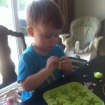 I was browsing around on one of my favorite blogs (Make It and Love It) the other day and saw a super fun craft idea…making your own crayons using broken crayons and silicone ice cube trays. So, the boys and I tried it out. It’s funny how peeling and breaking crayons is one of their favorite past times when it’s something they’re not supposed to do, but when it becomes okay and part of a project it’s not as exciting…haha…oh well. They still had fun, and the crayons turned out great!!!