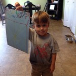 Xander made me the sweetest card today! He asked for my help in spelling “From Xander To Mommy”, so I started at the beginning and let him know each letter in succession. He was super excited about already knowing how to spell his name when he got to that part, noticed the start of a pattern in “Mommy” with the M’s and O’s, and enjoyed alternating each letter in ROYGBIV order. Yay for Xander!