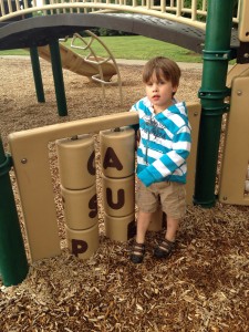 Tom and the boys and I went to Touch-A-Truck this afternoon at Pinkerton Park (it’s an annual event where the city brings out trucks from the Fire, Police, Sanitation, Streets, Water, and Parks to celebrate and honor the City Public Works Departments). It’s so awesome and what a wonderful educational opportunity for the boys to learn more about our community helpers! They checked out a SWAT truck, a Bobcat, a John Deere tractor, a garbage truck, and a school bus. The favorite by far was the bucket truck that held a man high up in the air who threw down soft earth balls to all of the amazed kids below. A sweet surprise for this mother’s heart was…when each of my boys climbed into the Bobcat…the first thing they did was look for the seatbelt and try to put it on! The boys were chomping at the bit to play at the super fun playgrounds the whole time, so they did that before and after too. There is NO way I could have managed it all without Tom, so yay for Daddy being so hands-on and for being able to come with us!