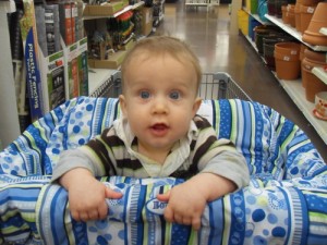 In his thirty-sixth week, Xander is: saying his first word (“dah” for “dog”); taking a pilot ride in the shopping cart, sitting up like a big boy; having a blast getting into all of the different toys around the house (his favorite stations right now are: the end table with the wooden puzzles; the play kitchen with the play food, pots, pans, and utensils; and the plastic easel with the Leap Frog ABC magnets); and sleeping through the night (the 7 pm to 6 am kind…yes!!!) pretty consistently, much to our profound amazement and joy.