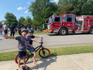 One of the things we love about our neighborhood is the annual 4th of July parade…complete with a fire truck blaring patriotic music, everyone/everything decked out in red/white/blue (including bicycles, strollers, and dogs), and popsicles. This year, Roman got to enjoy it with his best friend, Owen.