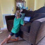 Xander wins the Most Creative Seating Award for remote learning. He changes up his seating the most of the three boys throughout the day, but he’s always engaged/on task, getting his work done, and doing what he’s supposed to be doing (and he loves to snack it up and stay well hydrated while he’s doing it). Congratulations, Xander!!!