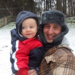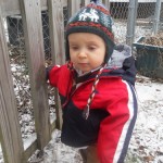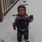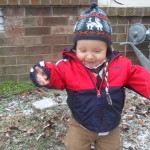 So, I still get excited on snow days, even though I’m not the one staying home from school or work. Â 🙂 They’re just so hushed and beautiful. Â Before breakfast, Jonas was looking out the window in his playroom (our living room), saw the snow falling down, pointed, and said “out”. Â So, I promptly picked him up in his warm and cozy, fleece, footie pajamas, pulled a beanie down over his head and ears, and carefully carried him down our front steps into the makings of a winter wonderland. Â He looked at the white flakes collecting on the ground and falling from the sky and looked at me and smiled the sweetest discovering-something-for-the-first-time smile…priceless.