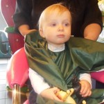 We took Jonas for his first haircut today. Â He was very serious, keenly observant of his surroundings, and a little tender-hearted. Â Overall, he fared really well and impressed the stylist with his sweet spirit and his first-haircut bravery. Â I totally had a tearful moment watching one of the first of many rites of passage to come in the life of my little, baby boy becoming a big, grownup boy.