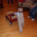 The next day Tom suggested we all go for a walk and asked Jonas, Petra, and I to wait for him by the mailbox. Then, around the corner, he comes, wheeling the most awesome green car for Jonas, who was ecstatic. Â With much gusto, he calls it his “cah cah” (for “car car”). Â Yesterday, he even said, “DaDa, cah cah” and then he said “out”. HaHa!!! Â 🙂