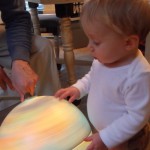 In his fourteenth month, Jonas is: Â adding a whole new group of words and signs to his repertoire (the words “nana” for “banana”, “mome” for “oatmeal”, “minmin” for “cinnamon”, “mahmen” for “amen”, “bac” for “block”, “buh” for “button”, and “sic” for “music” AND the signs for car, toothbrush, massage, and light); REALLY helping us out by saying “up” and doing the sign for “sleep” when he’s ready for a nap or for bed; drinking whole milk (we have to water it down a bit to work him into the taste/texture but still…he takes it cold and in a sippy); trying a few new foods (tomatoes, oranges, and grapes); blowing on his oatmeal to “cool it off” after Mommy does; enjoying his two new favorite past times (saying “up” with a pleading face and climbing the stairs with Mommy or Daddy right behind him); exploring the house (especially the tupperware and the pots and pans drawer/cupboards in the kitchen); pointing at anything and everything and saying “dat” for “that”; stacking one block on top of another; asking for “music” with the words “sic” and “buh” and the sign for “music” and pushing four different buttons to hear his favorite songs; loving the new turning-the-fan-off/on-and-the-lights-off part of his bedtime routine; starting to explore the world of tantrum throwing; taking one champ nap in the middle of the day (2 to 3 hours) and continuing to sleep 12 to 13 hours at night without making a peep.