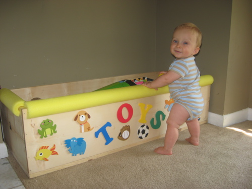 In his fortieth week, Jonas is: babbling up a storm; trying out his new toothbrush; having a blast standing up in his crib; pulling up on anything and everything; dipping into the protein well with organic meat purees (turkey, chicken, etc.); commandeering the spoon at mealtime in valiant (and messy) attempts at spoonfeeding himself; and cracking us up with his big boy way of following a whole grain puff with a swig of water from his sippy cup. Â