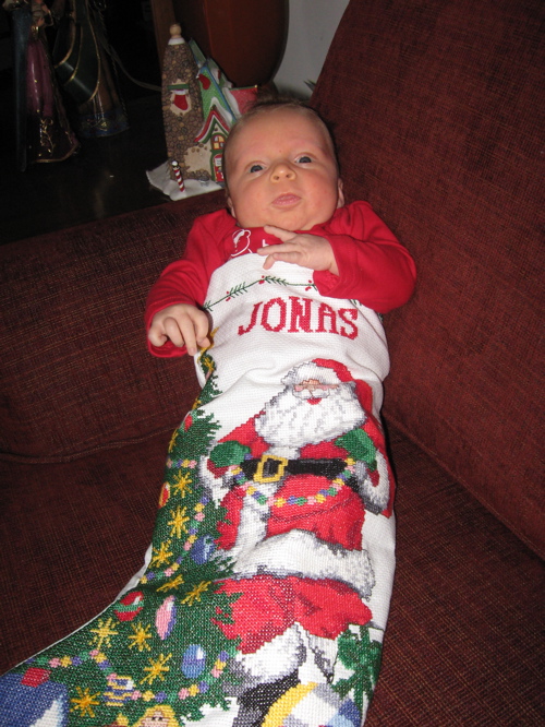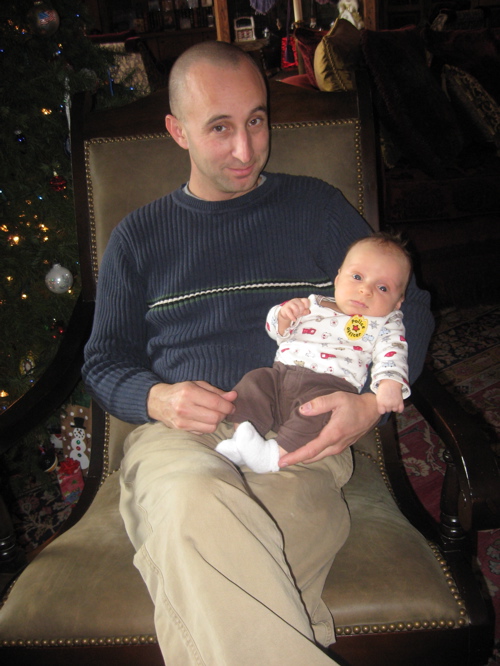 We hung out with Grandma and Pops on New Year’s Day…Jonas was eight weeks old. Â (A beautiful picture that Uncle Kerry took, of Jonas napping with Pops in front of the fire, is forthcoming.) Â