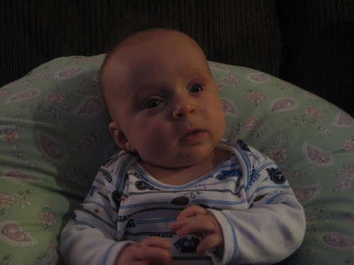 Jonas is up for a bit more tummy time these days…he does best with a little bit of sunlight, a little bit of music, and/or a little bit of Mommy or Daddy beside him. Â He seems to enjoy it more now than he used to…I think he’s beginning to realize his own strength and to see how much fun the world can be from a different angle.